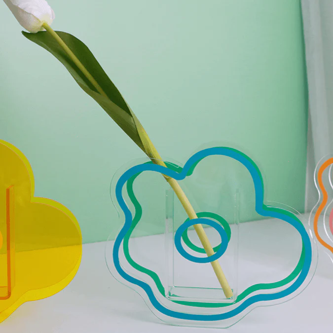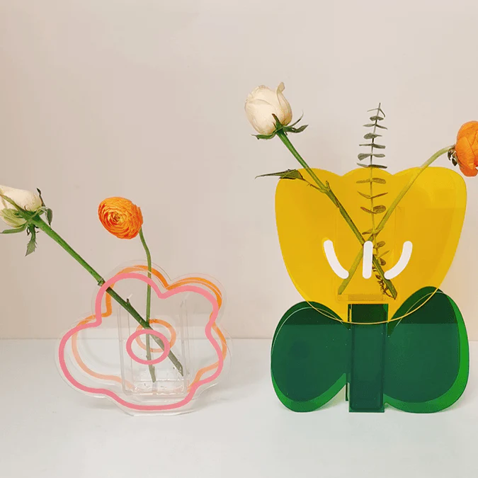 Quirky acrylic vases to add color to your space! Mix and match with flowers and leaves if you like.